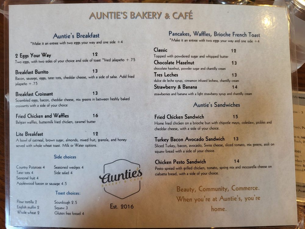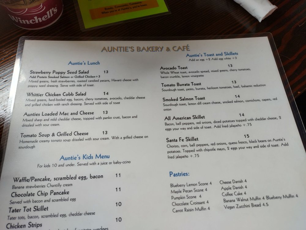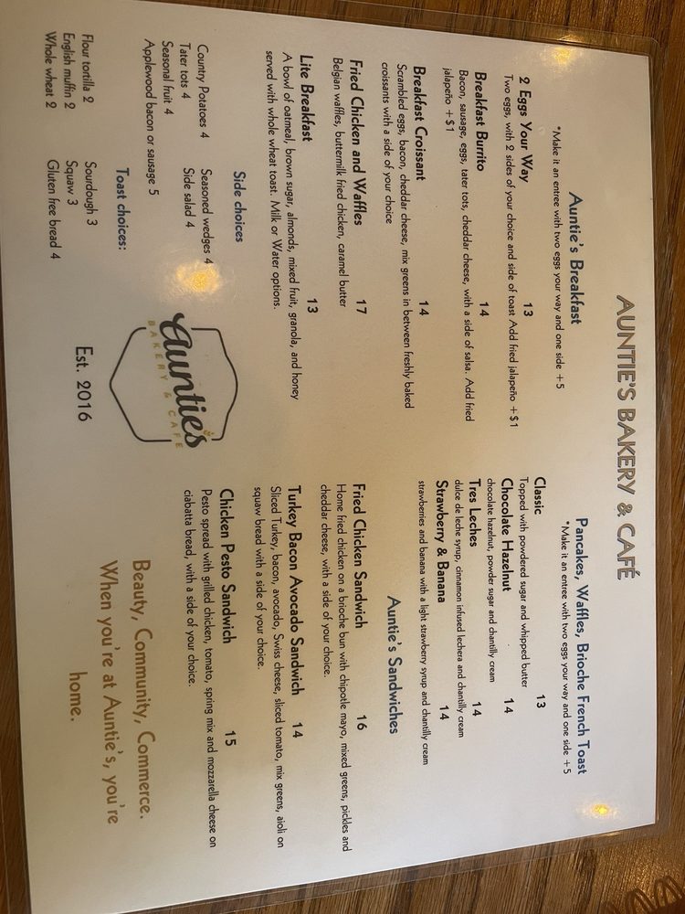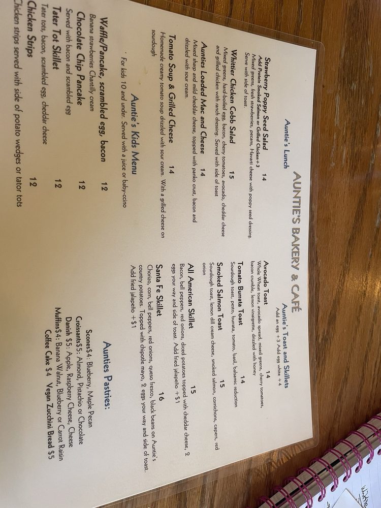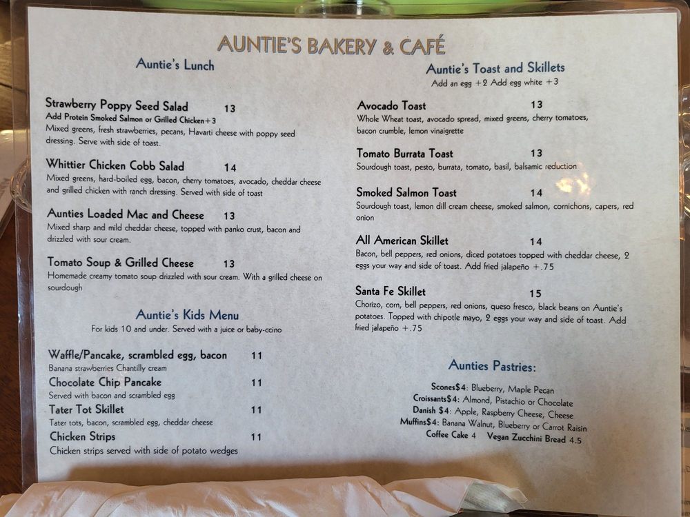 In the heart of Whittier, CA lies Aunties Bakery & Cafe, a charming spot offering a variety of comfort foods, baked goods, and all-day breakfast options. With a trendy and casual ambiance, this cafe is ideal for groups, families, and even furry friends, with dog-friendly outdoor seating. The menu caters to diverse dietary needs, including gluten-free and vegan options, ensuring everyone can indulge in the delicious fare. Customers praise the fresh and flavorful dishes, such as crispy bacon, fluffy pancakes, and unique creations like chicken and waffles. The attentive staff, led by the warm and inviting owner Auntie, adds a personal touch to the dining experience. Despite occasional service delays, the overall atmosphere and quality of food make Aunties Bakery & Cafe a must-visit brunch destination.